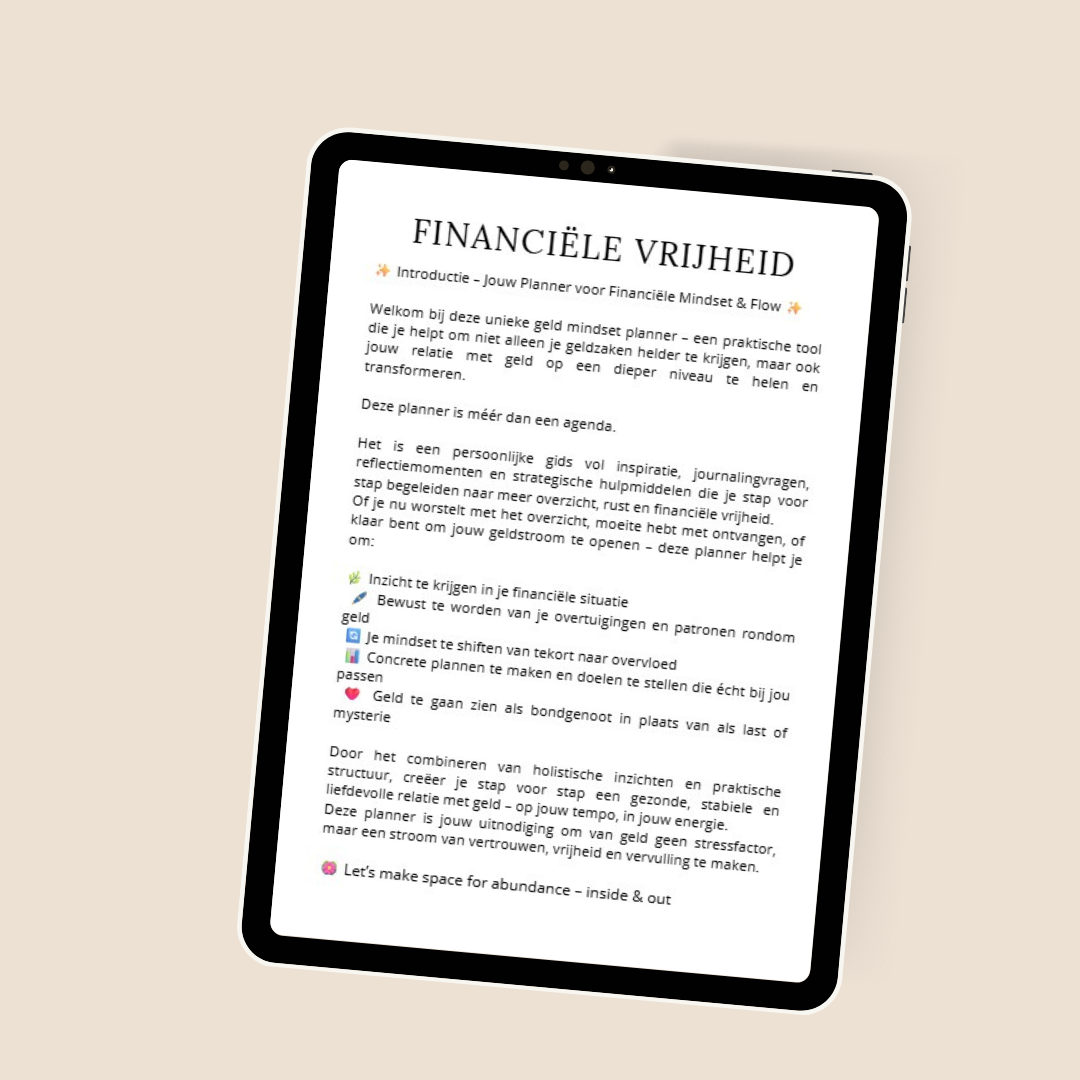 Deze planner is niet zomaar een invulboekje, maar alles wat je nodig hebt om je geldrelatie te verdiepen en te transformeren – overzichtelijk in één document.